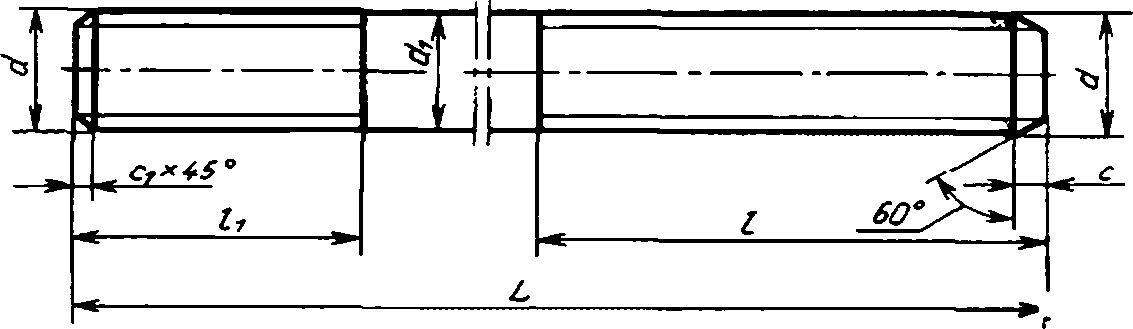 Пример условного обозначения дюбеля-шпильки исполнения 1 диаметром резьбы d=16 мм, длиной £ = 240 мм: