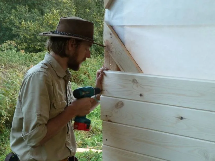 - Крепление вагонки саморезами набирает популярность в последнее время, поэтому необходимо разобраться, как это делать. Первым делом, просверлите небольшое отверстие в каждой панели, чтобы поместился шуруп. Воспользуйтесь шуруповертом, вгоните шуруп до упора в рейку. Толщина сверла должна подходить под шуруп, чтобы дерево не треснуло при последующем креплении. Эта проблема была актуальна многие годы, но сейчас вагонки делаются из мягкого дерева, поэтому шанс испортить материал значительно уменьшился. Чтобы правильно все сделать, дрелью необходимо заготовить отверстия для саморезов. Заготовленные дырочки по глубине должны быть примерно в половину от длинны самореза. Если не сделать подобную заготовку, то шанс испортить вагонку значительно возрастает. Этот способ требует определенной сноровки и наличие определенной физической силы. Если у вас есть возможно потренироваться перед креплением, то сделайте это. Рассмотрим подробнее, как выбрать саморезы.