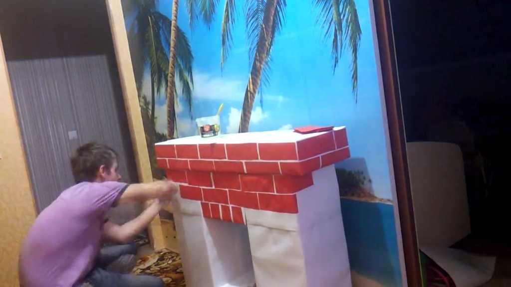 Качество и вид будет зависеть от материала и вида картонных коробок. Если взять упаковку из-под телевизора, «фальшкамин» будет узким без особого углубления в том месте, где находятся горящие дрова. Поэтому чаще всего используются широкие коробки, как минимум 50 сантиметров вглубь. Также желательно использовать максимально прочный картон, в этом случае сверху можно будет сделать подставку из дерева.