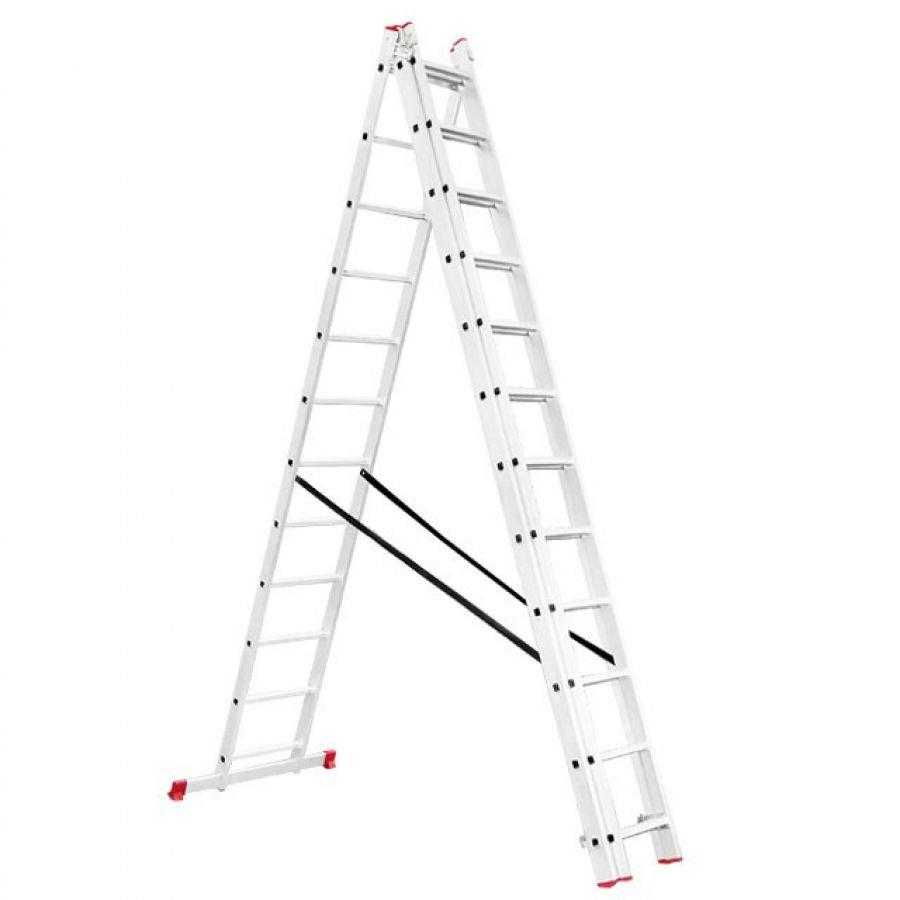 - универсальная двухсекционная лестница с рабочей высотой 687 см обойдется покупателю в 11 тыс. рублей;