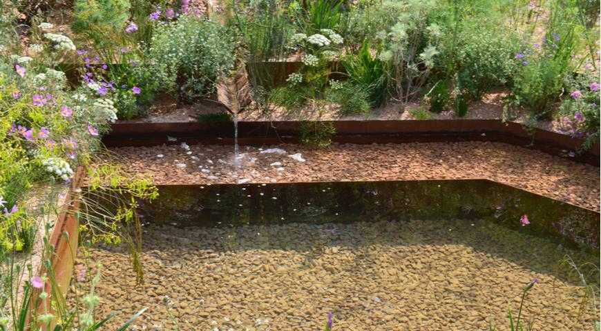 на участке можно организовать ручей или фонтан, но отсутствие водоема не является проблемой.