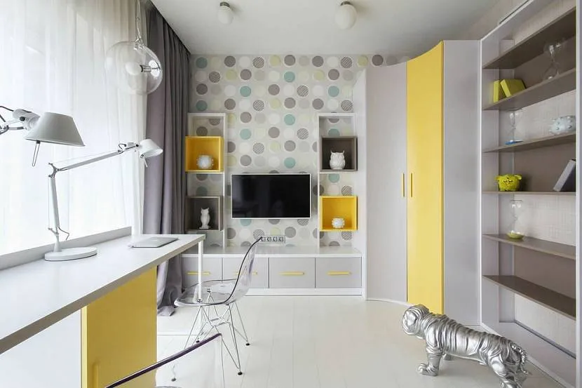 Идеальный цвет для потолка – белый или серый. Эти цвета помогут зрительно расширить комнату, освежить интерьер и стать универсальным фоном для размещения аксессуаров. Это сделает комнату яркой и необычной.