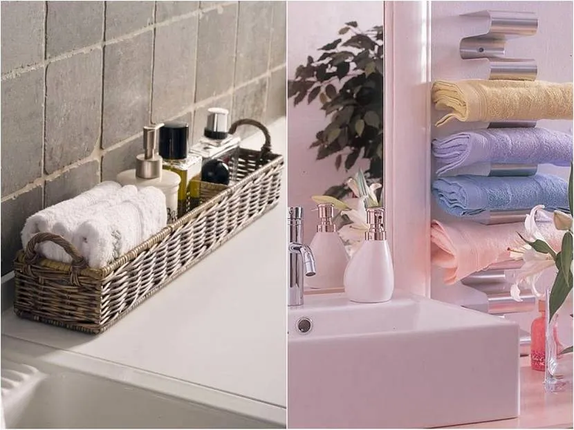 Чтобы сделать интерьер ванной уютным, дизайнеры советуют хранить полотенца в стопках. Текстиль белого или любого приглушенного собирают в одном месте. Тканевые детали привносят в санузел ощущение наполненности и обжитого помещения. Улучшить психологический микроклимат в комнате помогут изящные емкости для мыла и шампуня.