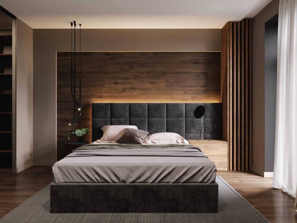 - Высокое изголовье у кровати – изголовье такой длины украсит еще больше вашу спальню.