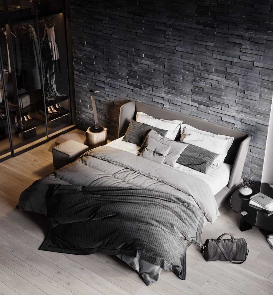В монохромном цветовом решении, акцентные стены должны быть ярче других, это касается комнат любой площади:
