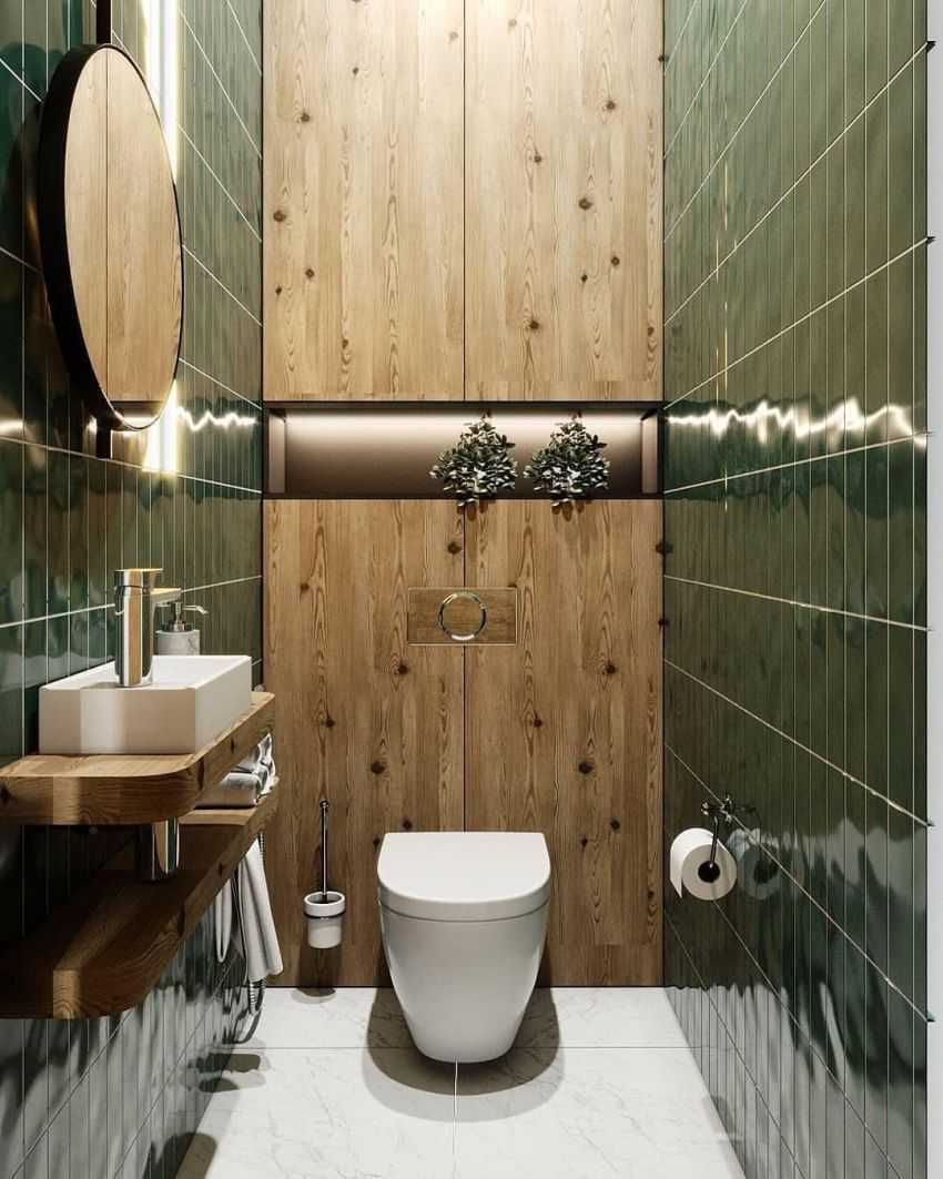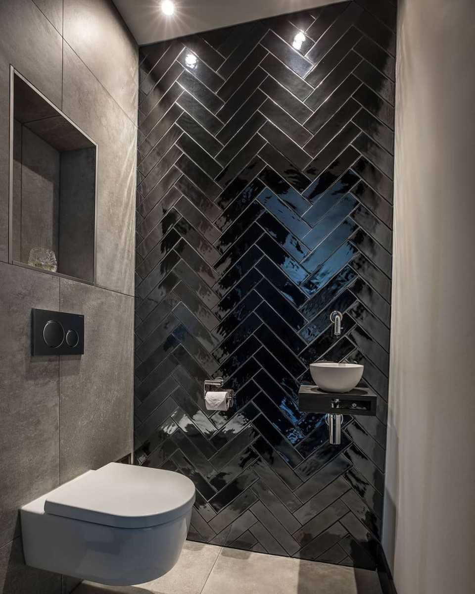 Выбирайте плитки, которые оказывают наибольшее влияние на окончательный вид туалета. Просто помните, что не обязательно облицовывать стены плиткой до самого потолка. Вы можете сделать это только наполовину, а остальные стены покрыть выбранным цветом, например, темно-синим, зеленым или даже черным. Альтернативой плитке являются обои, фотообои, а также красивая штукатурка. Любой интерьер может быть оформлен со вкусом. Просто хорошо продумайте стратегию и разработайте функциональные решения, которые также будут актуальны. Правильный выбор материалов, текстур и структур, цветов может творить оптические чудеса.