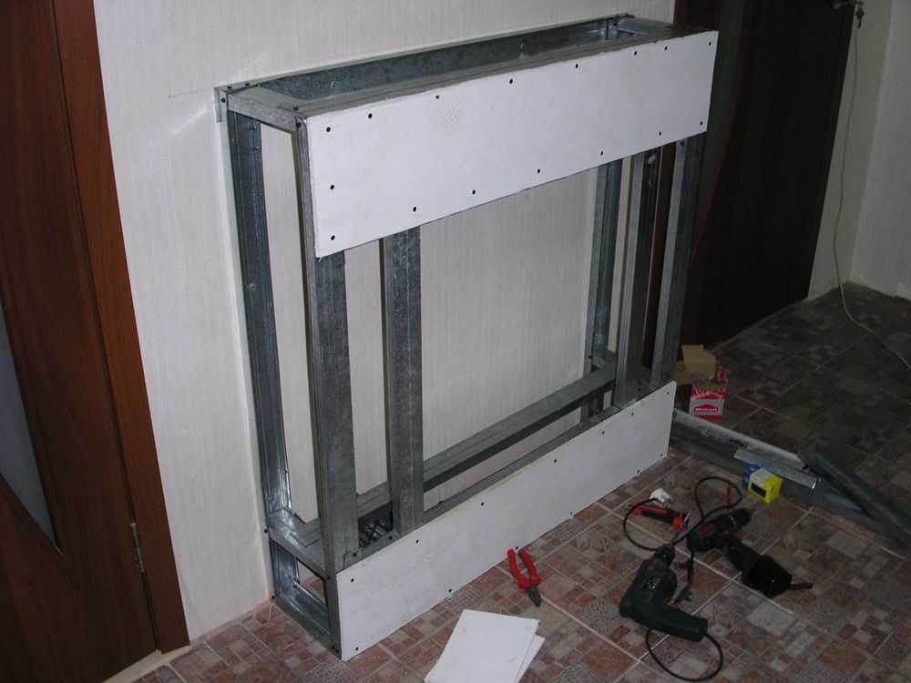 - Непосредственно корпус, который изготавливается из листов гипсокартона. Этот материал устойчив к перепадам температуры, легко обрабатывается и достаточно экологичен;