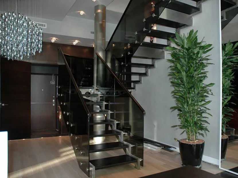 Несмотря на хрупкость, этот материал часто используется для изготовления описываемых систем. Его выбор становится оправданным тогда, когда создается современный интерьер. Установить поручни из стекла можно за несколько дней, сделать это может любой мастер, владеющий навыками плотника.