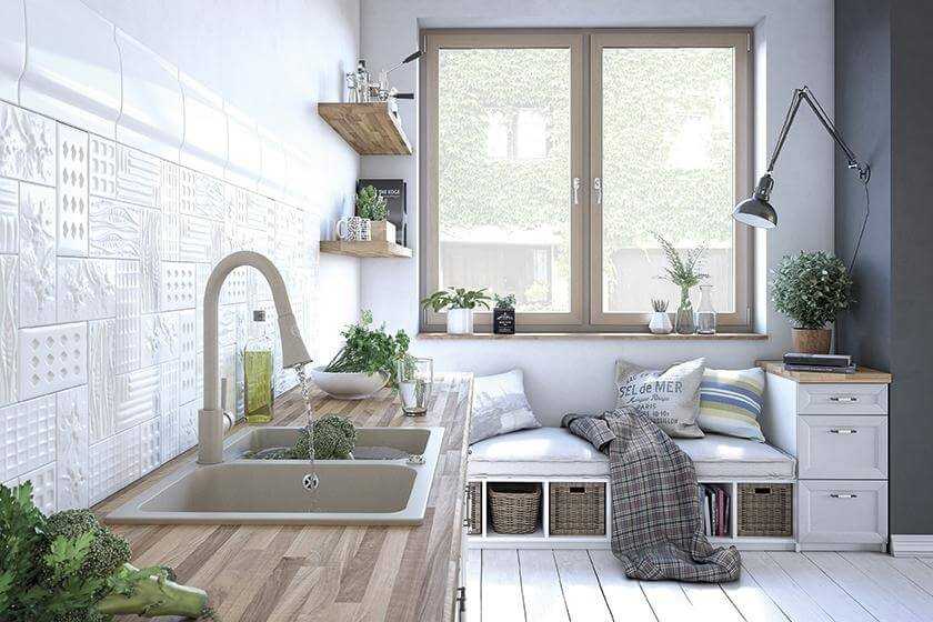 Основным преимуществом угловой кухонной скамьи является экономия места. Ей не нужно дополнительное пространство, в отличие от стульев, которые нужно сдвинуть, если вы хотите сесть за стол. Это по достоинству оценят владельцы небольших квартир. Однако это не означает, что угловая скамья должна располагаться только в углу.