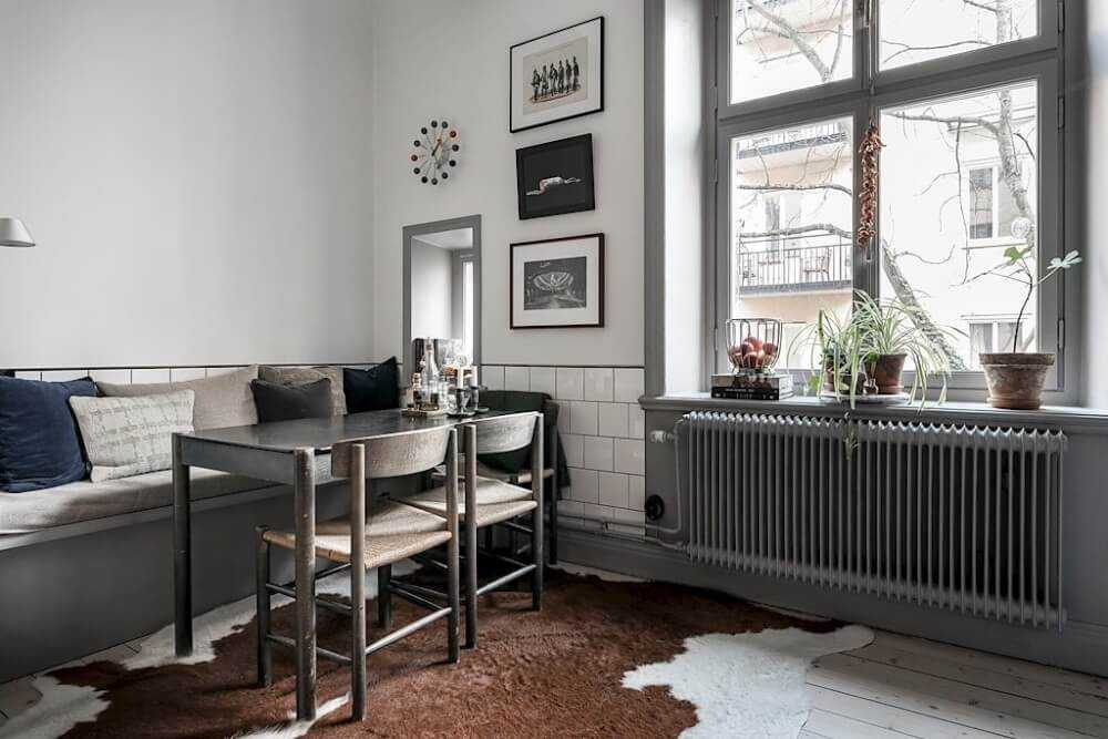 Угловая скамья создаст впечатление порядка в комнате. Классика — это угловая скамья с одной более длинной и одной более короткой стороной, а их соотношение копирует размеры стола в форме прямоугольника. Вы можете выбрать левую или правую версию в зависимости от того, где вы хотите разместить ее.