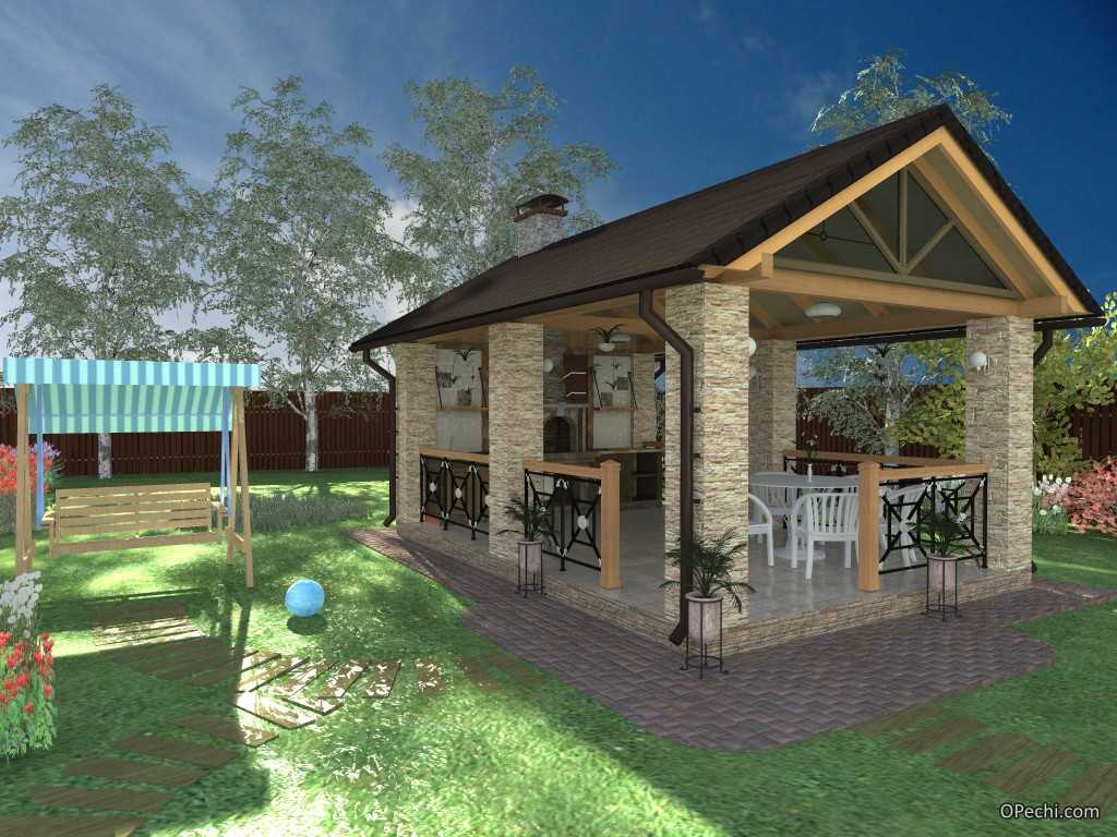 Беседка с барбекю, выполненной в виде стационарной печи, требует более серьезной подготовки, так как такие сооружения обязательно выполняются на основании проекта со строительной частью, проектом электроснабжения, а иногда водоснабжения и газоснабжения. Иногда выбирают беседку закрытого типа, тогда встает вопрос о выборе стеновых материалов, окон и специальном фундаменте для стен беседки.