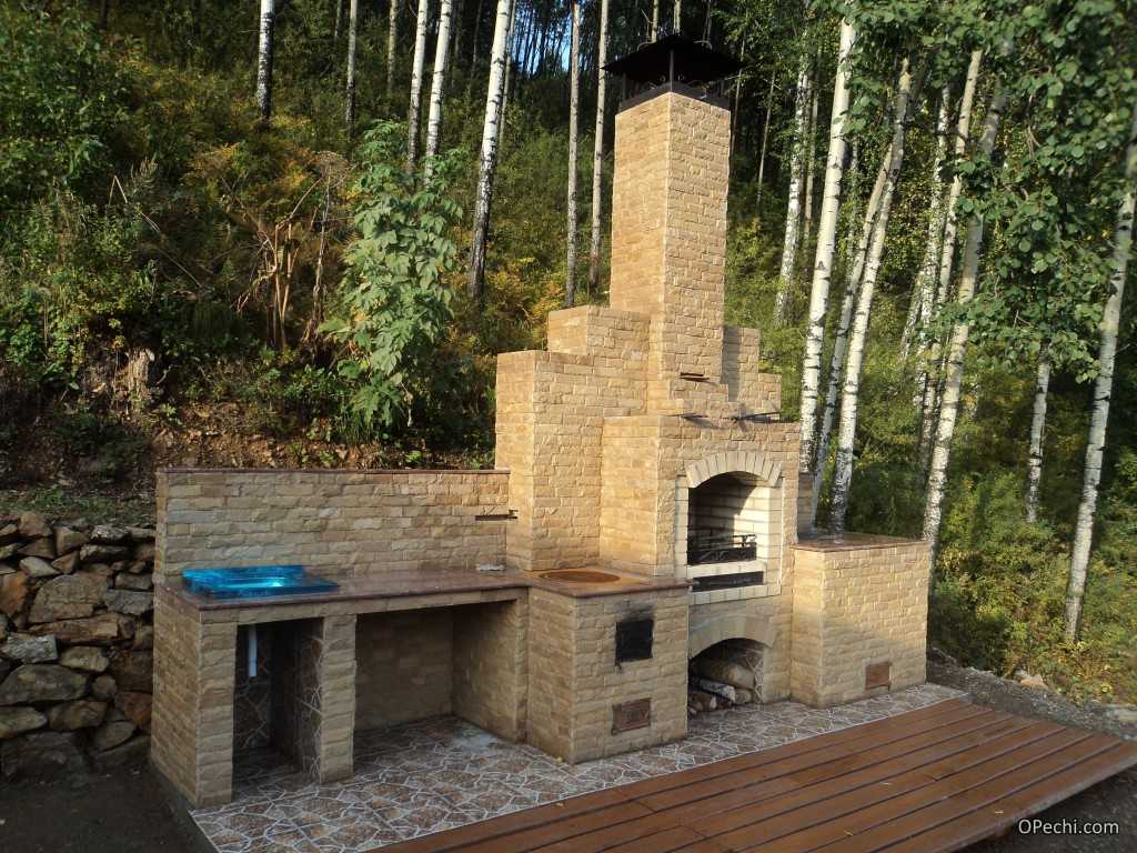 В первом случае это может быть закрытый или открытый очаг с приспособлениями для установки вертела, шампуров или решетки над тлеющими углями.