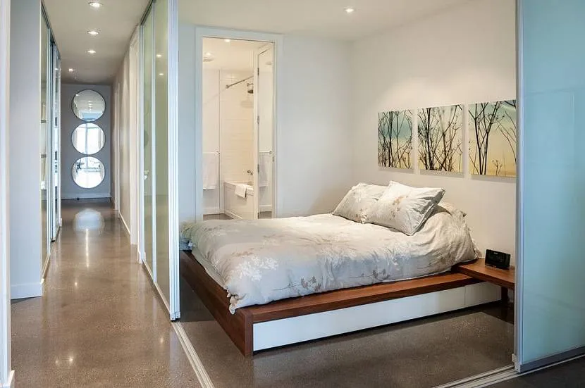 Перегородка из стекла в спальнеИсточник remontbp.com