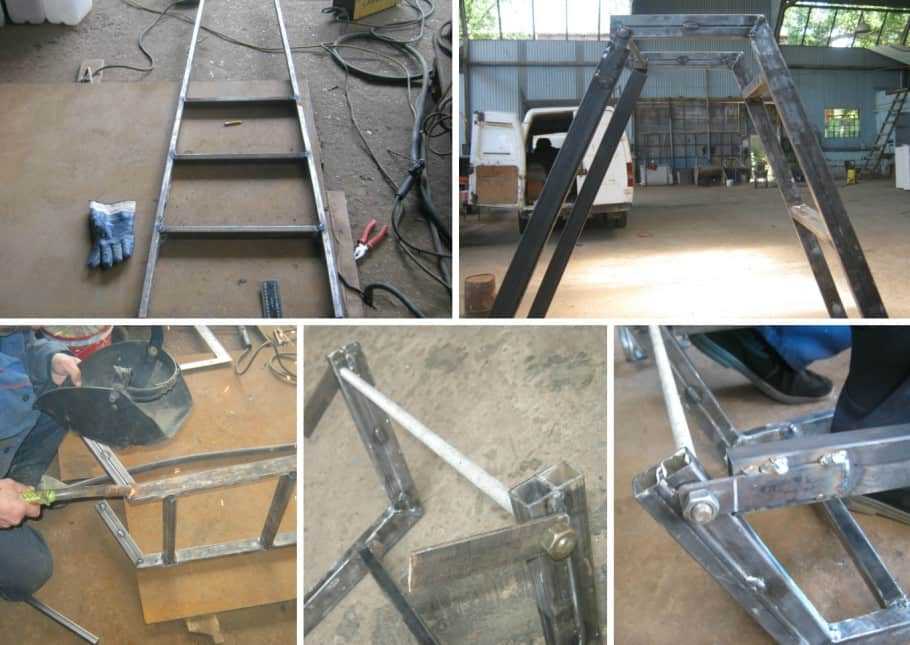 - соединить секции между собой запорными механизмами. Нагрузка на них в положении строительных козлов достаточно высока, поэтому сварочный шов должен быть максимально качественным;