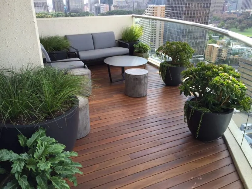 - Гладкую террасную доску укладывают на балконе с остеклением. За такой поверхностью проще ухаживать; в жилом помещении с мебелью и отделкой она смотрится гармоничнее рифленого аналога.