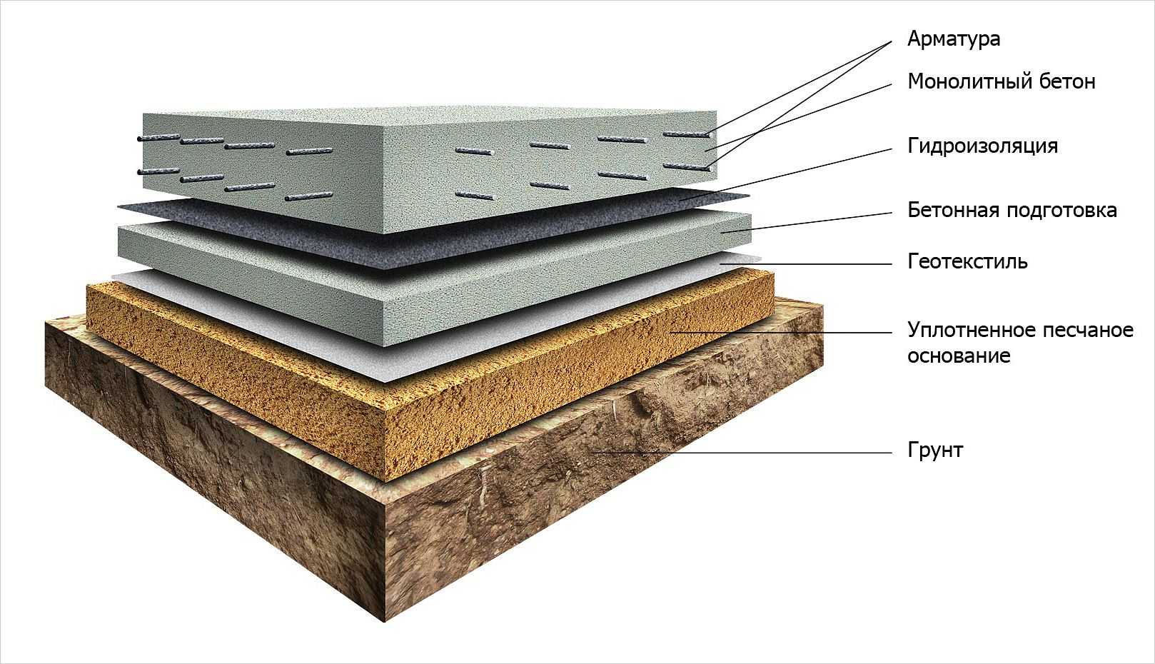 Обычная монолитная плита представляет собой сплошное, заглубленное или расположенное на поверхности земли, основание толщиной 10-60 см.