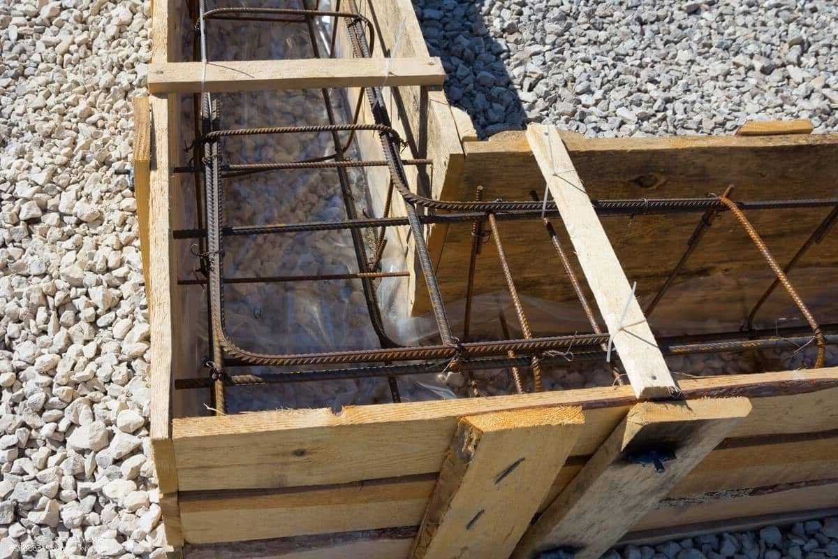 Армирование чаще всего производится для ленточного фундамента. Из прутьев делают каркас, для этого используются стержни сечением 8-15 мм в зависимости от размеров конструкции. Их фиксируют с помощью металлической проволоки.