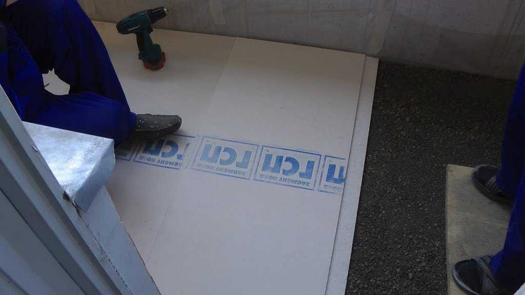 - Поверх засыпки укладывают ГВЛ (гипсоволокнистый лист). Рекомендуется делать это в два слоя, перекрывая стыки. Листы фиксируют при помощи клея.