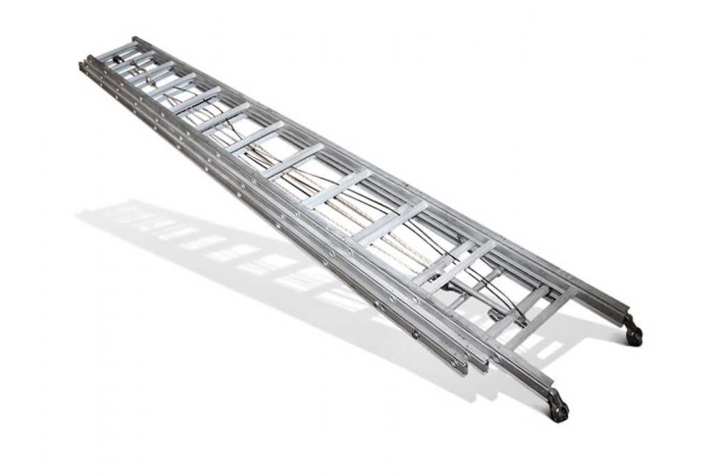 Пожарная лестница трехколенка (выдвижная 3 х коленная) – это механизм, который создан для поднятия работников пожарной службы на высокие здания и проведения операций внутри строений. Помимо этого, данные устройства часто используют в период учений. Эта лестничная коснтрукция состоит из трех колен, а также механизма останова и выдвигания.