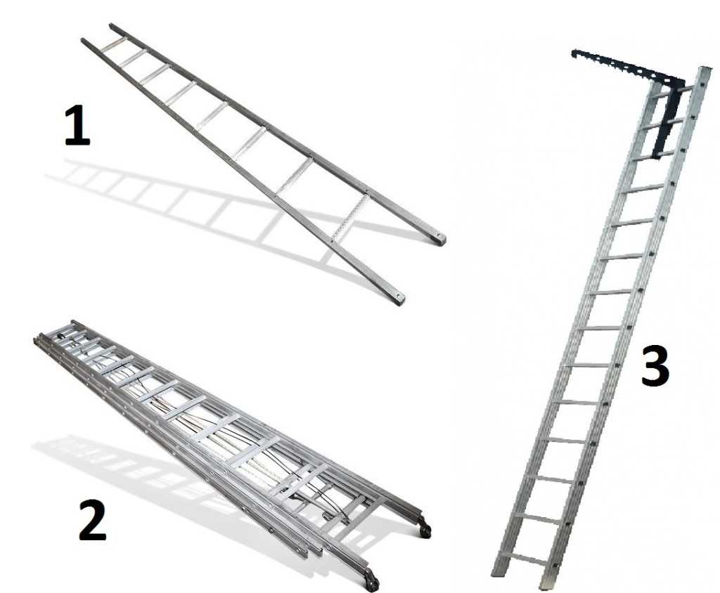 Наиболее популярными среди лестничных конструкций считаются именно ручные механизмы. Свою популярность они заслужили благодаря мобильности и легкости в применении. Стоит отметить, что они бывают выдвижные (трехколенка), складные (лестница-палка) и подвесные (штурмовка).