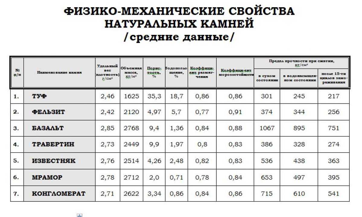 Показатели крымского ракушняка, согласно ГОСТ 4001-84:
