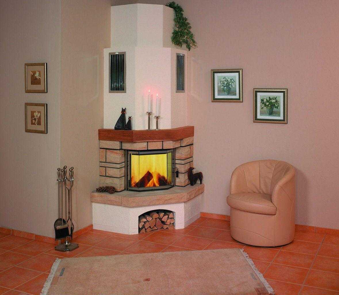 Если главной задачей углового камина является обогрев помещения, то топку необходимо делать низко, чтобы хорошо прогревался пол, забирая снизу холодный воздух.