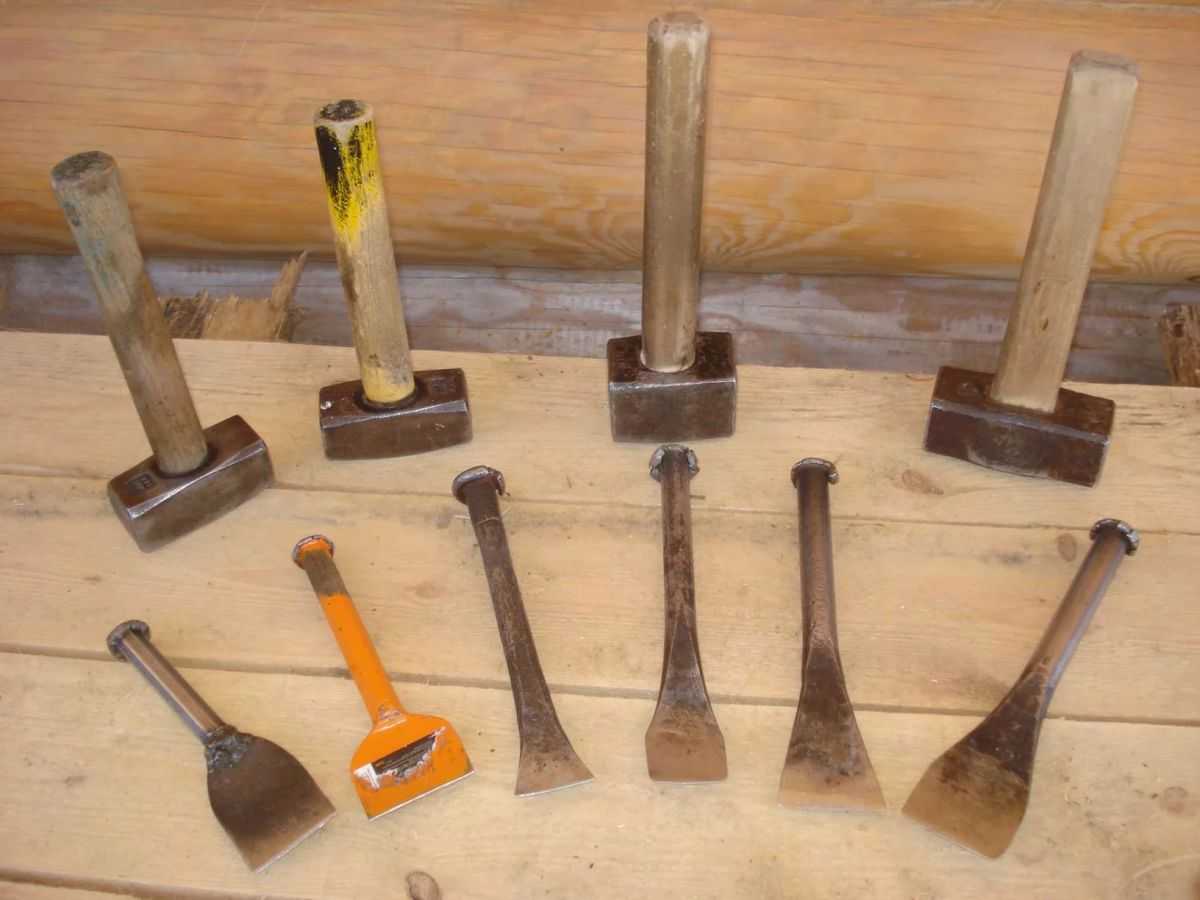 После укладки бревен делают конопатку чаш, заправляя выступившие волокна между бревном и чашей. Инструмент для этой операции называется конопаткой, а простукивают конопатку киянкой или молотком.