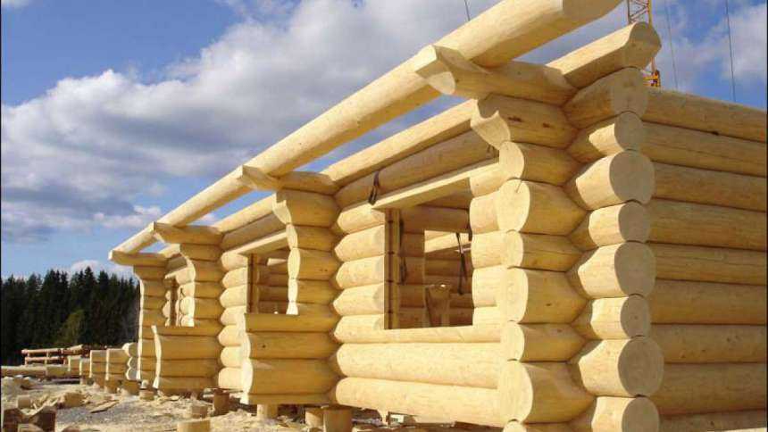 Рубка « в обло» на видео показана с использованием качественных пиломатериалов: