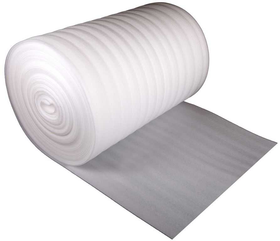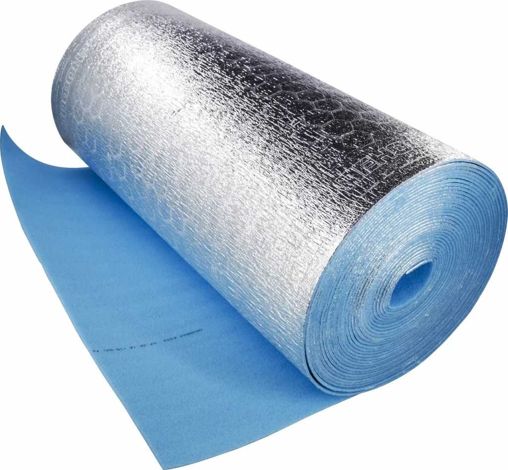 - Утеплитель из вспененного полиэтилена с отражающей поверхностью. Его главное преимущество – небольшая толщина, что не забирает пространство, тепло удерживается за счет отражающего покрытия, которое должно быть направлено в комнату. Рулон просто расстилается, отрезается по длине и фиксируется, швы нужно заклеить специальной лентой, чтобы тепло не уходило через стыки.