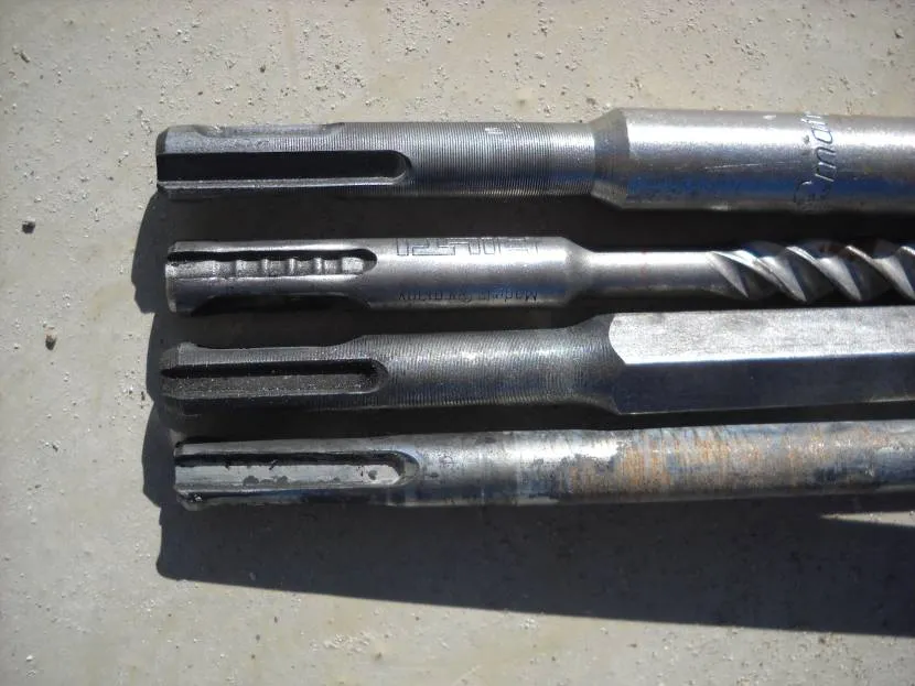 На концах оснастки присутствуют по два открытых продольных углубления. Они располагаются на обеих сторонах, ближе к тыльной части. Еще есть два закрытых паза. Сделаны они для надежного закрепления в патроне. А он в перфораторе особенный. В 80-х годах прошлого века немецкие инженеры из компании Bosch разработали специальный зажим SDS. Аббревиатура переводится на русский язык, как – вставь, поверни, закреплено.