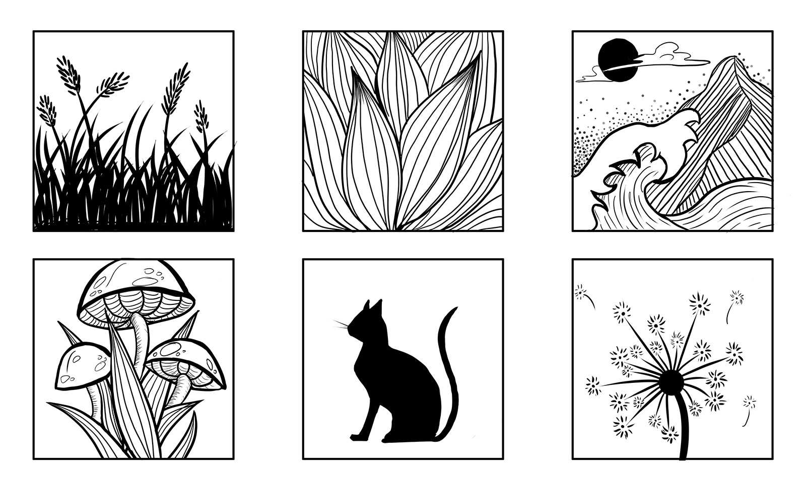 Настало время самого интересного упражнения. Вы потренировались в основе и теперь можете приступить к небольшим иллюстрациям. Не стоит сразу браться за что-то сложное, начните с простых рисунков и уделяйте каждому их них не более 15 мин.