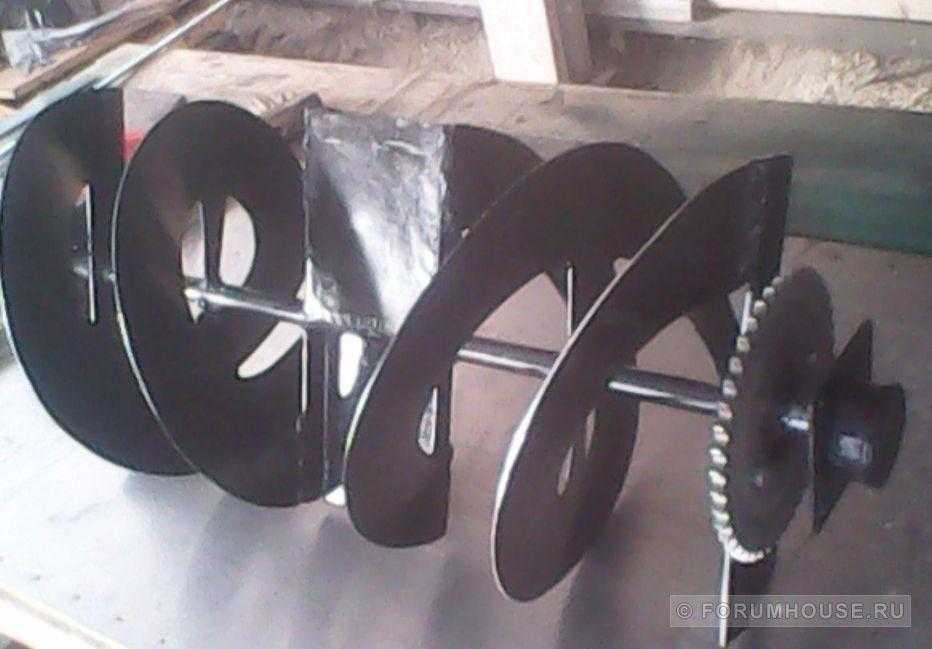 Дисковые ножи вырезают из стального листа. Сначала выпиливают кольца, разрезают сбоку в любом месте, после чего растягивают в стороны. Получившиеся полукольца спирали наваривают на вал витками по направлению к лопаткам. Кромку ножа проще оставить ровную, но ледяной нарост такой шнек вряд ли одолеет. Здесь можно постараться вырезать зубчатую кромку, которая легко справится со слежавшимся снегом, а также распилит тонкую ледяную корку.