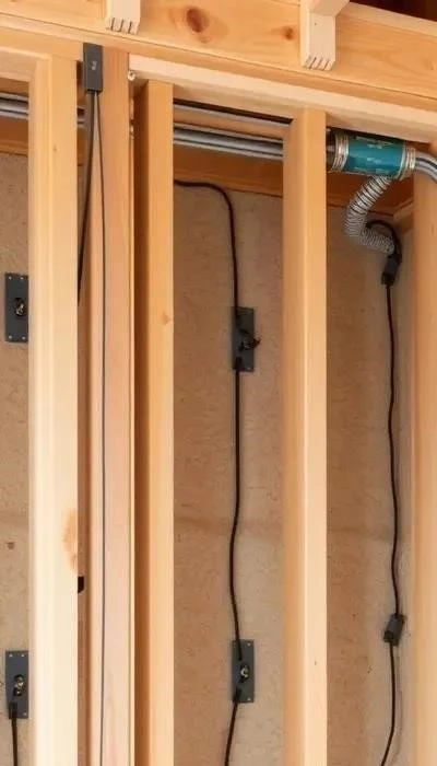 Прокладка кабеля в каркасе требует особого внимания к пожарной безопасности. Используйте негорючий кабель (ВВГнг-LS) в гофрированных трубах, избегая контакта с утеплителем. Важно соблюдать правила ПУЭ и обеспечить защиту от механических повреждений, а также учесть возможную усадку дома, используя гибкие соединения.
