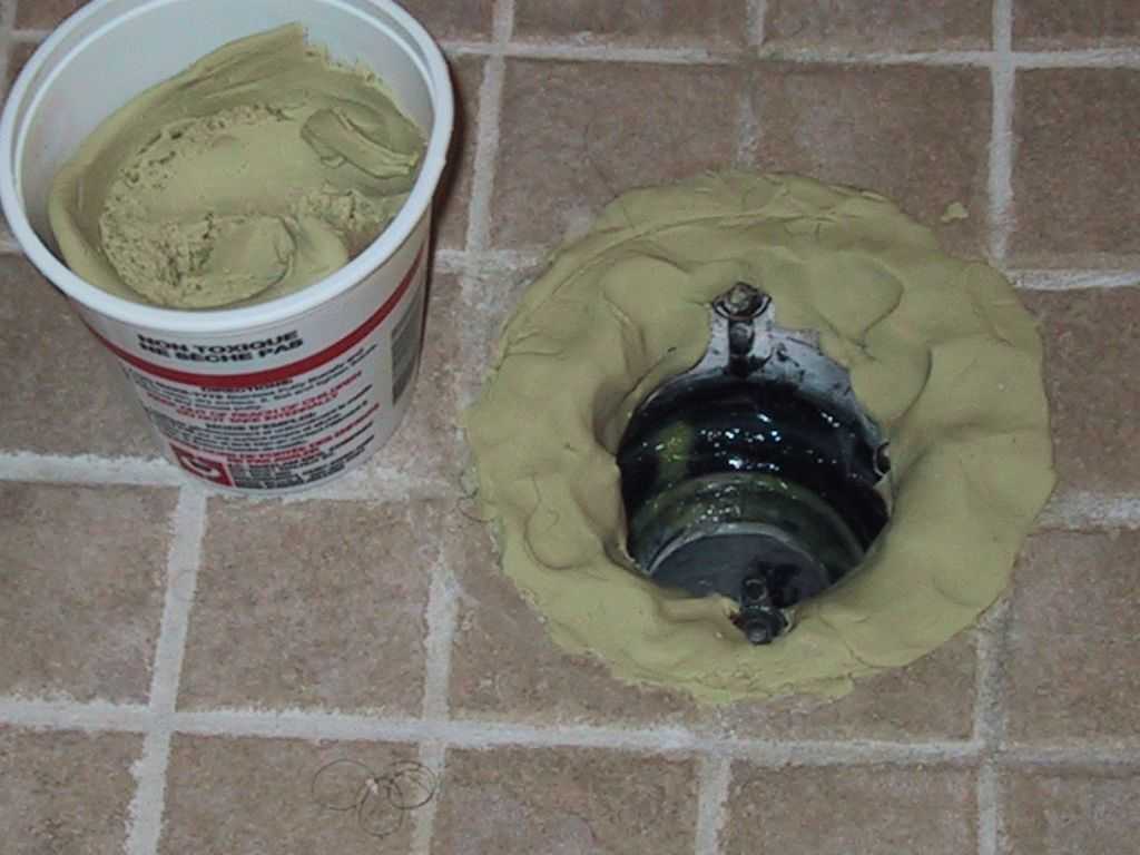 - Удалить старый цемент с помощью зубила и молотка.Вытащить набивку.Уложить новый слой набивки. Залить раствором цемента, приготовленного в соотношении 5:1 (цемент:вода).