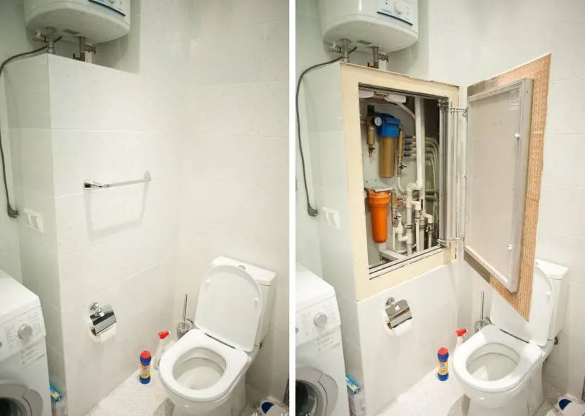 Схожим образом можно закрыть трубы в туалете.