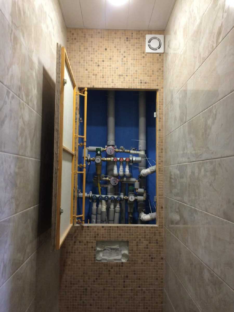Отверстия для счётчиков и кранов тоже нужно замаскировать, чтобы конструкции выглядели красиво. Для этого используют несколько материалов.