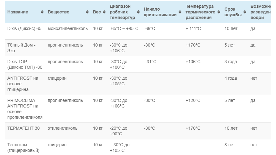 Пропилен-гликоль, наоборот, химически почти нейтрален. Он меньше всех теплоносителей реагирует с другими веществами, перегрев наступает при более высоких температурах и приводит не к таким последствиям.