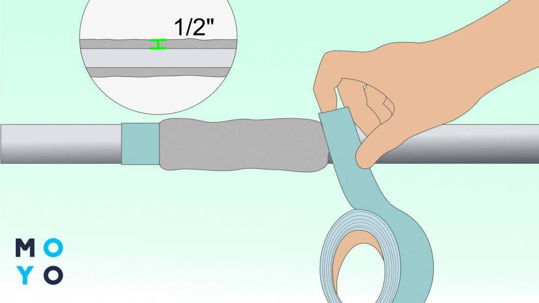 - Обмотать по периметру стыка;