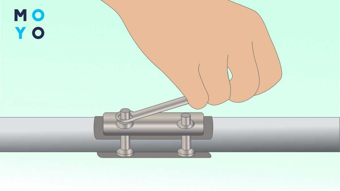 Если замечена влага, в качестве сиюминутной меры можно использовать купленный или самодельный хомут. Когда есть заводской вариант нужного диаметра, просто наденьте его на место утечки и надежно зафиксируйте болтом.