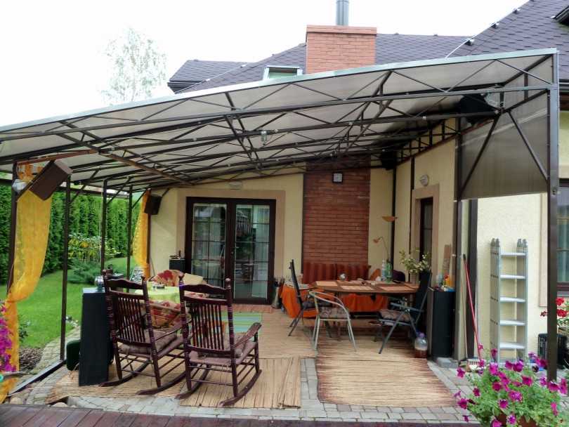 Навесы из металлопрофиля: фото пристроенной к дому конструкции