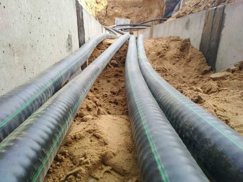 Трубы ПНД для прокладки кабеля размещаются в предварительно вырытых траншеях