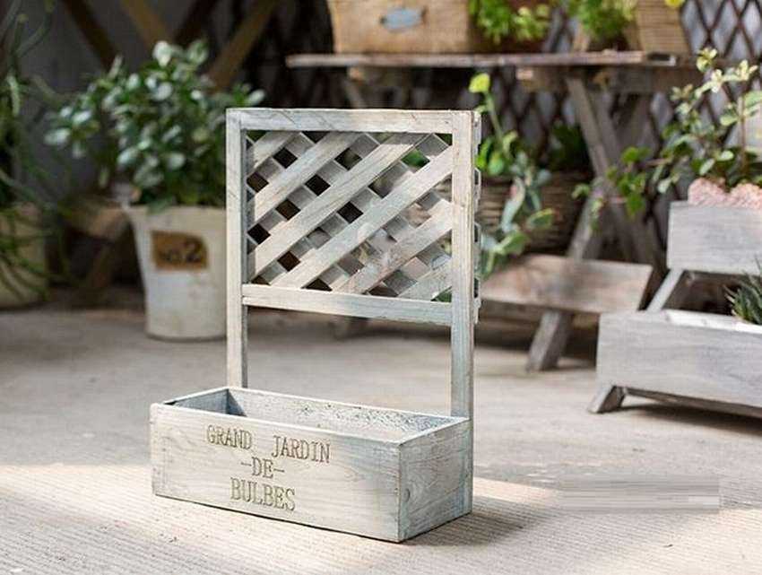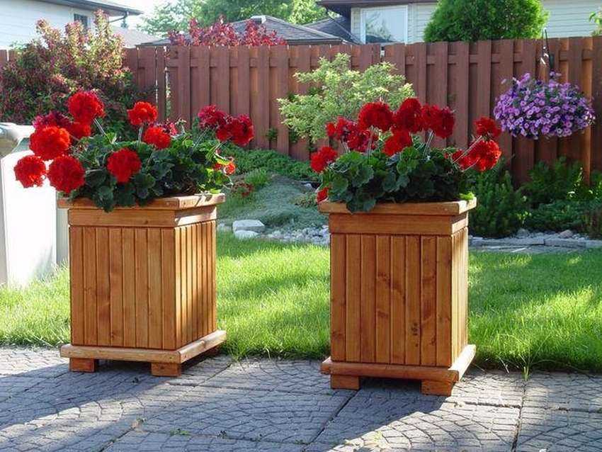 Вазоны, сделанные из деревянных деталей, встречаться чуть реже, чем пластиковые или керамические.