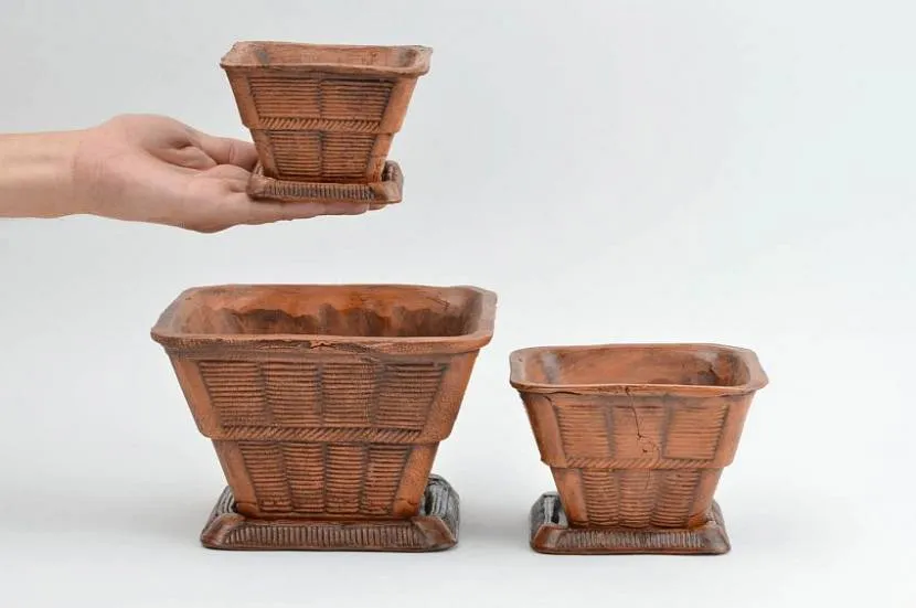 Глиняные самодельные горшкиИсточник cvetyportal.ru