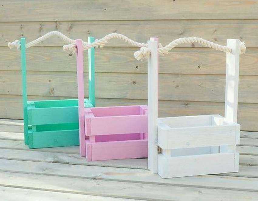 Ещё один вид подвесных ящиков, только в этом используют канат в виде ручки.