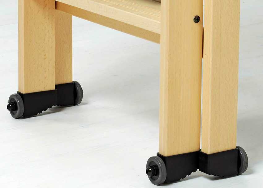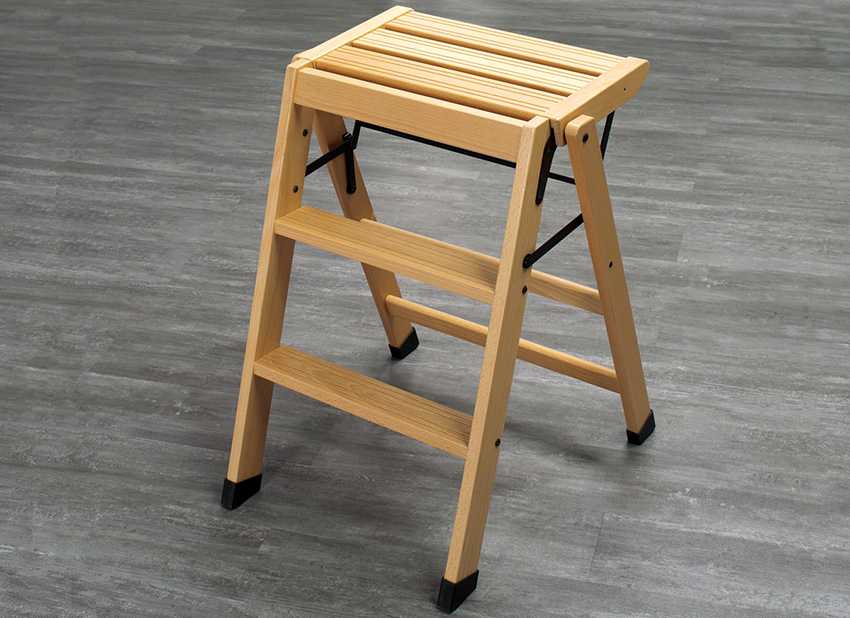 Деревянная табурет-лестница может быть оснащена дополнительным крепежом-блокировкой, который фиксирует устройство в нужном положении.