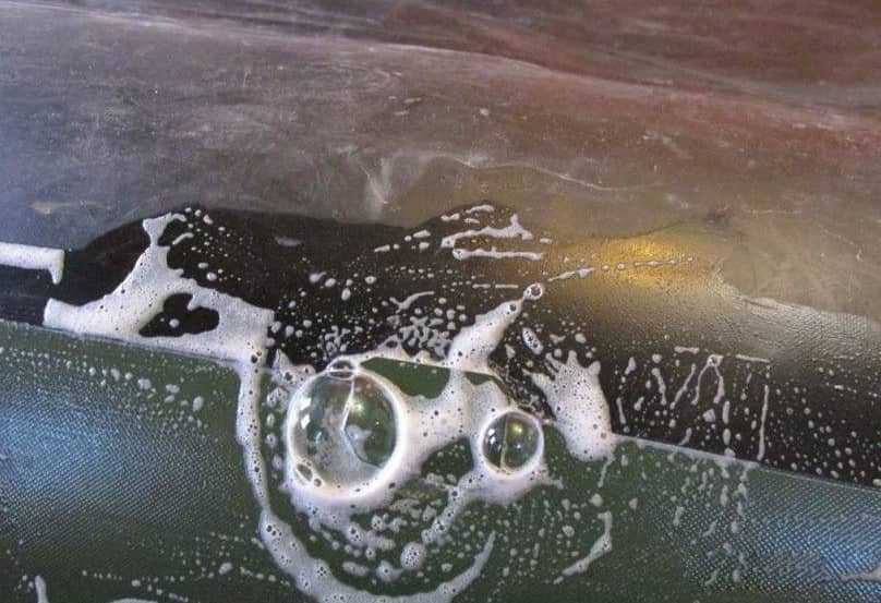 - Для поиска дефекта в домашних условиях можно воспользоваться мыльным раствором. Поместите в воду маленький кусок мыла и получившимся раствором смажьте корпус судна. На поврежденном участке появятся пузыри.