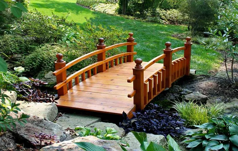Прежде чем приступить к строительству своего моста, вы должны понять его изучить конструкции и этапы, на которых будут выполняться работы. Это поможет вам избежать ошибок, которые могут привести к потере материалов и сохранению вашего времени. Это также позволит вам понять, можно ли сделать декоративный мостик своими руками за 1 день или на его сооружение понадобиться 2-3 дня. Ключевыми элементами в конструкции этого моста являются арочные опорные балки. Изящество их кривизны подчеркивается соответствующими изогнутыми поручнями.