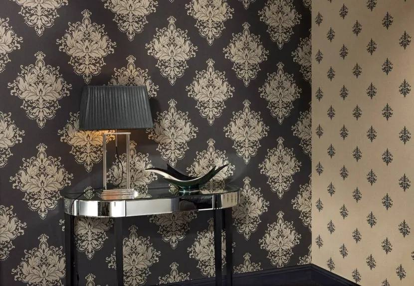 Классический интерьер отличается своей сдержанностью наряду с изысканностью. Чтобы подчеркнуть стиль, используют однотонные обои, полотна с флористическим или винтажным узором, вензелями, завитками, полоской и геральдикой
