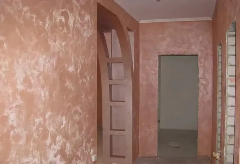 - Жидкие обои. Наносятся на стену как штукатурка. Очень хороший вариант для коридора. Прекрасно сочетается с другими обоями. Жидкие обои экологичные, при их помощи можно создать интересные узоры, постепенно переходящие из одного тона в другой. Их легко скомбинировать с металлическими или флизелиновыми обоями.