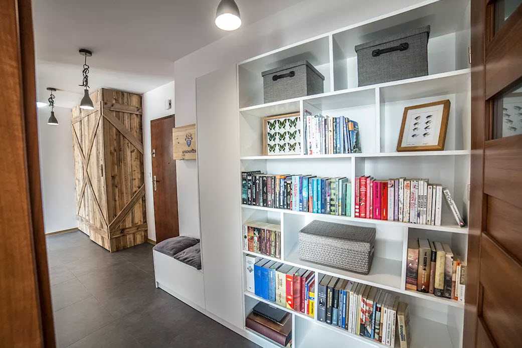 А ведь именно здесь нужно создать ощущение свободы, постараться изменить конфигурацию стен или сделать визуально выше потолки, чтобы могли одновременно снять верхнюю одежду и уличную обувь несколько человек.